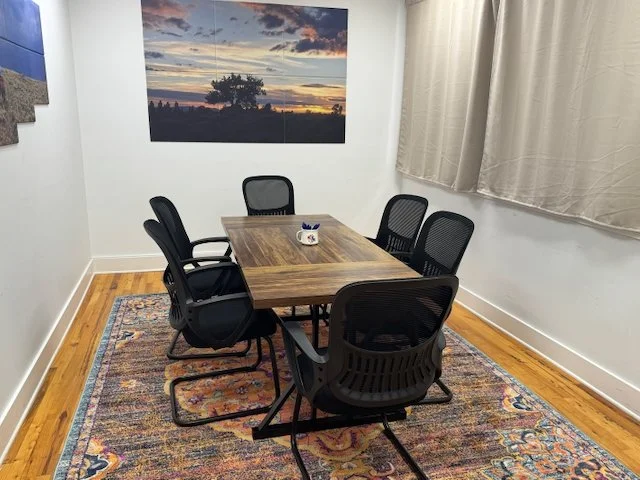 With two spacious breakout rooms, comfortable common area with full kitchen, free parking, and lots of area restaurants for lunch options, our offie is an ideal environment for your next mediation.